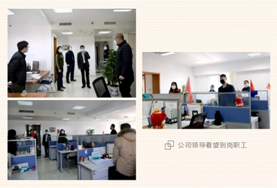 2月17日,公司黨委書記、董事長(zhǎng)許緘濤,副總經(jīng)理田偉,總經(jīng)理助理、董事鄭薇到公司總部各部室檢查指導(dǎo)疫情防控工作落實(shí)情況,并向到崗職工送來(lái)了關(guān)懷和慰問(wèn)。