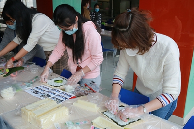 在這個屬于“女神”的節(jié)日里,工會組織女職工進行了一場愜意又休閑的手工制作活動。工作人員將事先準備好的制作壽司、雪媚娘等食品所需要的原材料在職工食堂擺放整齊,讓大家親自動手進行制作。制作過程中,大家親密交談,協(xié)同制作,在忙碌的工作之余度過了一段難忘的午后時光。