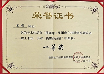 工會邢煜被評選為2020年度“集團優(yōu)秀工會工作者”稱號,土建室史劍參選的美術(shù)作品榮獲集團成立70周年“職工書法、美術(shù)、攝影作品展”一等獎。
