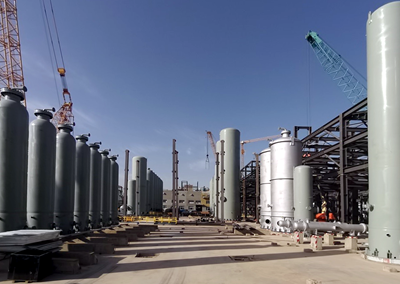 TSA/PSA成套包設(shè)備共35臺,主要設(shè)備有吸附塔、緩沖罐,此單元用于提純合成氣中的CO和H2,用壓縮機(jī)增壓后送入甲醇和乙醇裝置作為原料氣使用。