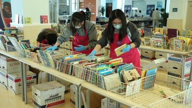 公司團委組織志愿者來到慈善書市進行志愿服務活動,對義賣圖書整理分類,并打包裝車。慈善書市是慈善商店常規的籌款活動,會在各學校間輪流舉行。書市對公眾開放,收入全部用于困境兒童的救助。
