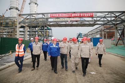 5月17日,集團(tuán)黨委委員、副總經(jīng)理高建成率隊(duì)到北京石油化工工程有限公司(簡稱:北油工程)總承包項(xiàng)目碳鑫科技甲醇綜合利用項(xiàng)目乙醇聯(lián)合裝置進(jìn)行調(diào)研,公司黨委書記、董事長許緘濤等陪同。