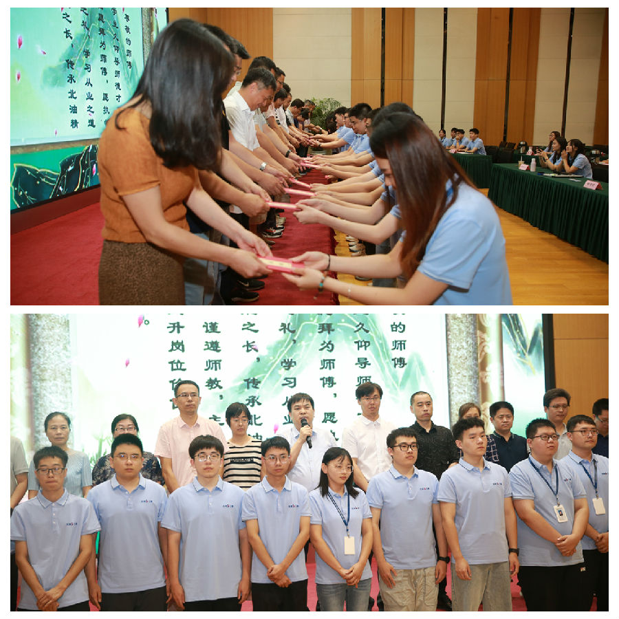徒弟代表向師傅鄭重送上拜師貼,將公司師帶徒制度繼續發揚光大,為塑造新一代后備力量繼續發揮積極作用。