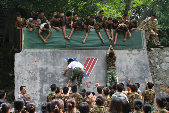 團(tuán)隊(duì)項(xiàng)目中,103名隊(duì)員僅用了29分鐘就成功翻越了4.3米高的畢業(yè)墻,團(tuán)隊(duì)的勝利使畢業(yè)生們體驗(yàn)到集體的力量,體會到甘于奉獻(xiàn)的偉大,樹立了相互支持、精誠團(tuán)結(jié)的團(tuán)隊(duì)精神和合作意識。